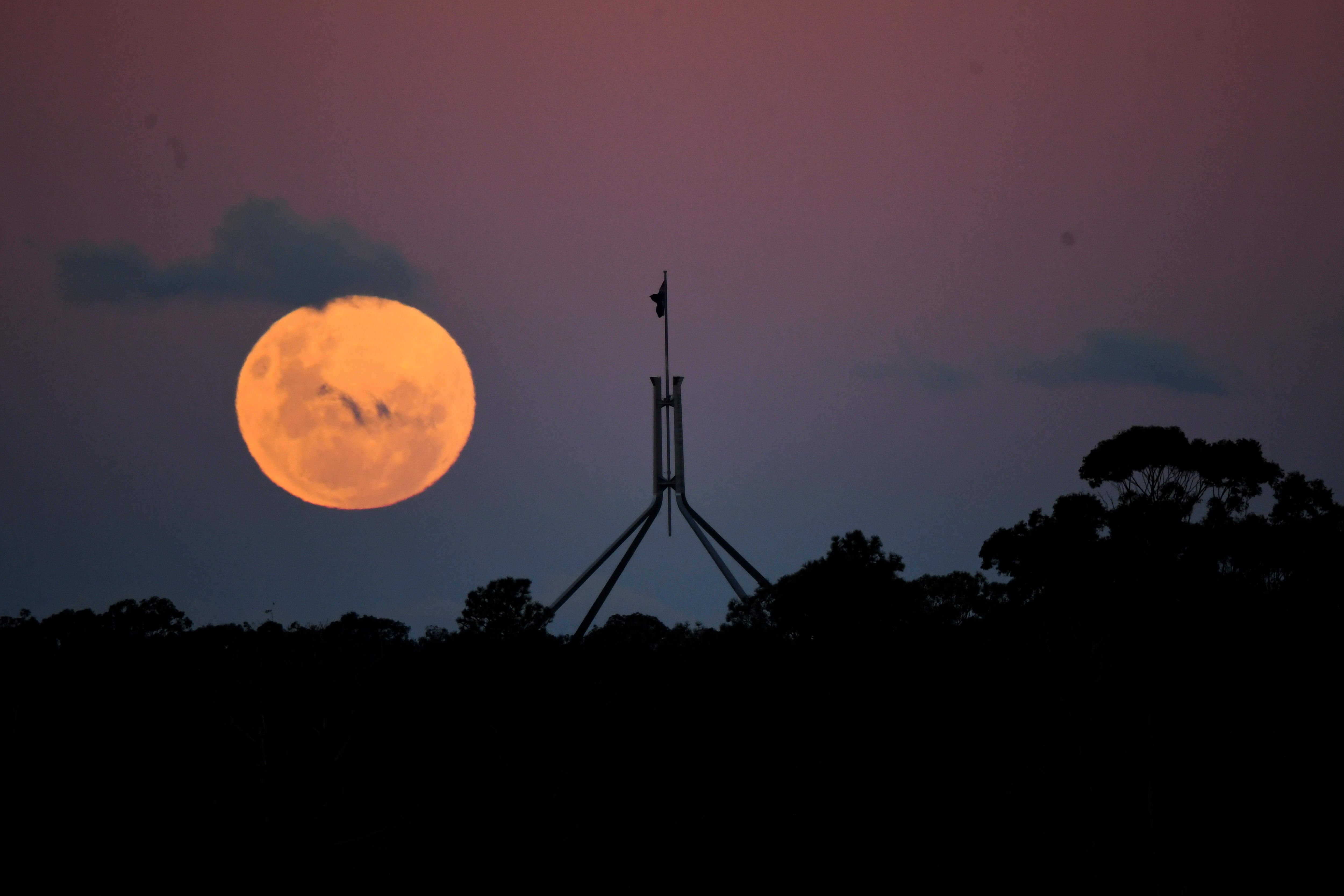 A 'super blood wolf moon' during a total lunar eclipse in marseille, france, in january 2019.